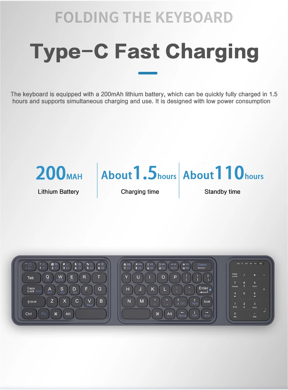 Type : Clavier sans fil pliable Bluetooth