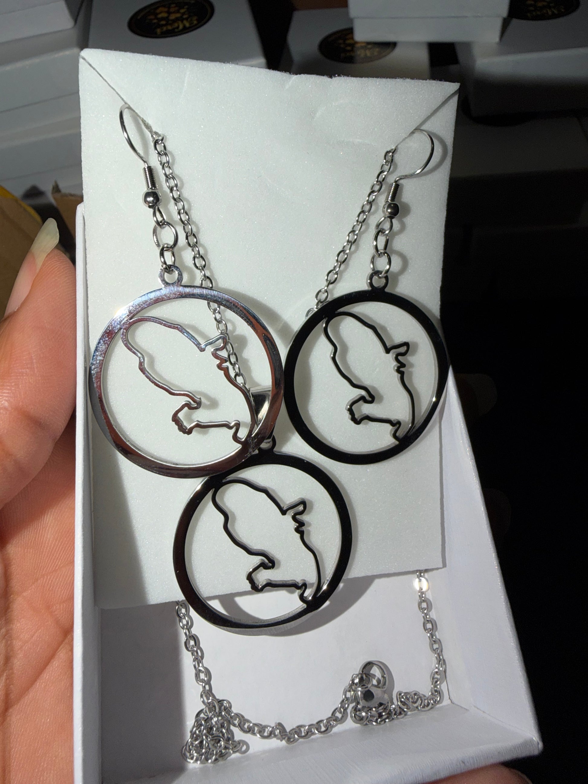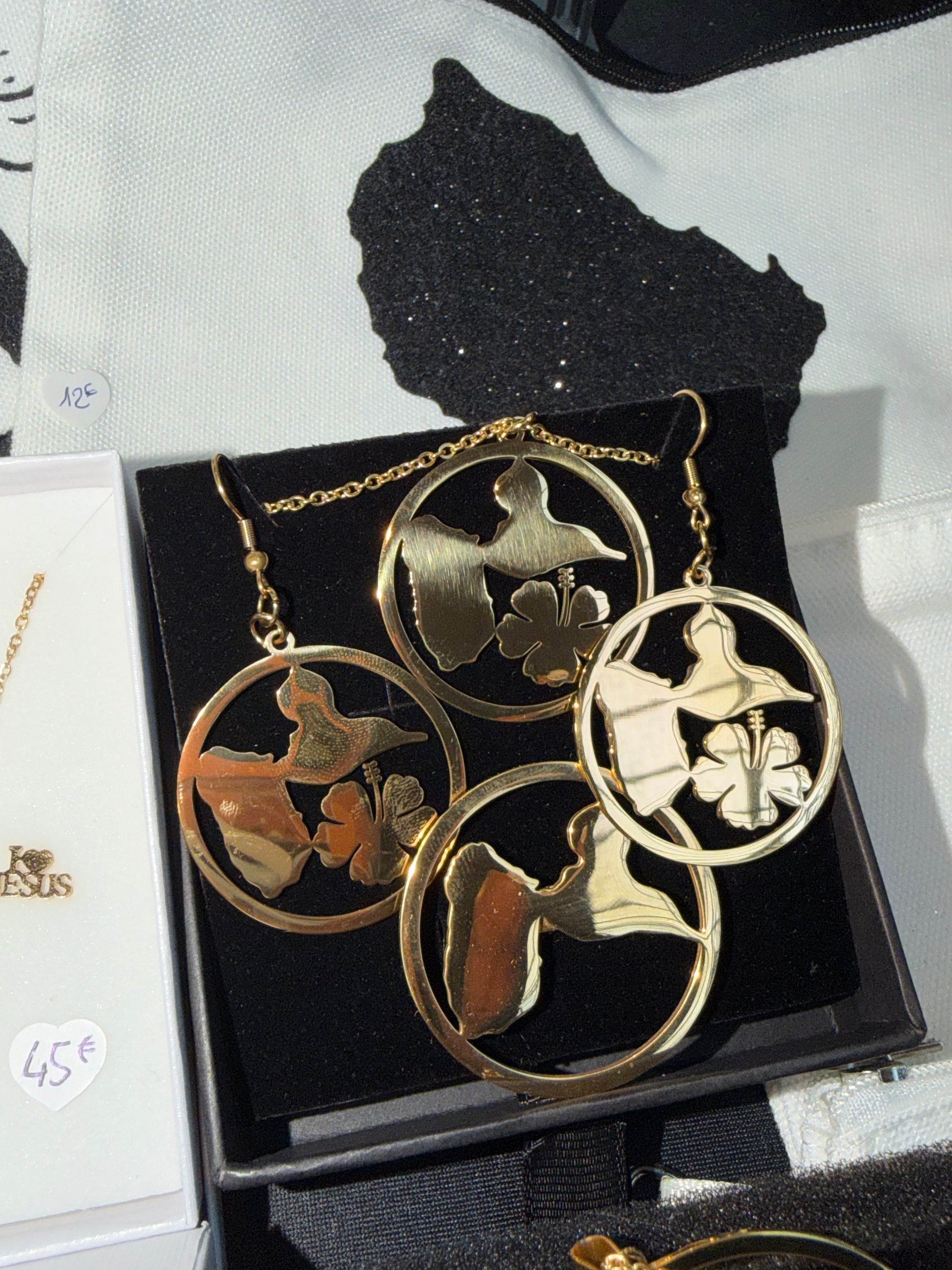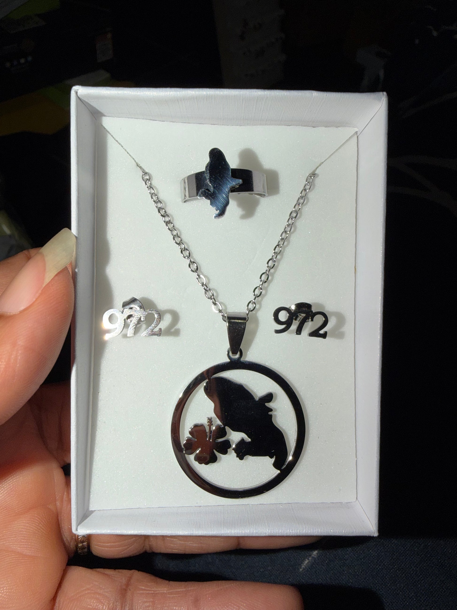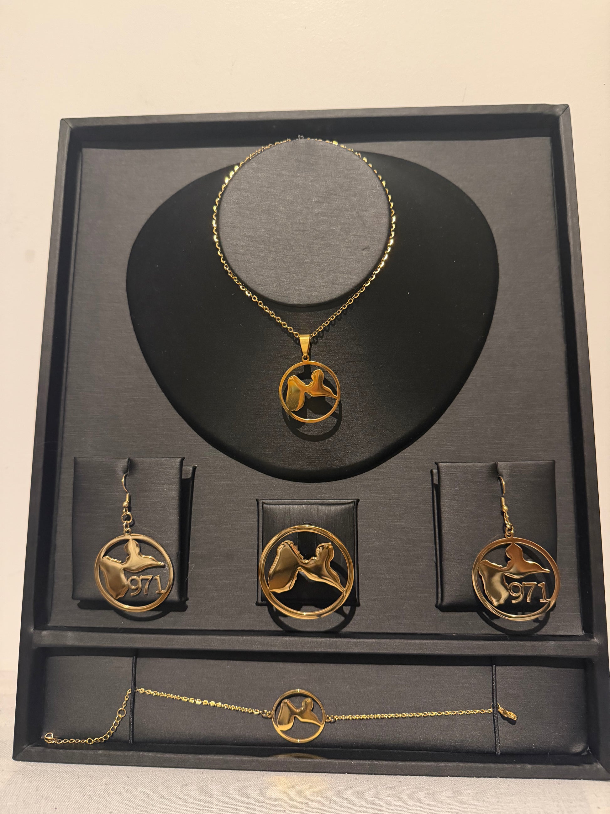 Chaque coffret est composé de bijoux en acier inoxydable (collier, bracelet, bague, boucles d’oreilles selon modèle) avec des designs inspirés de :