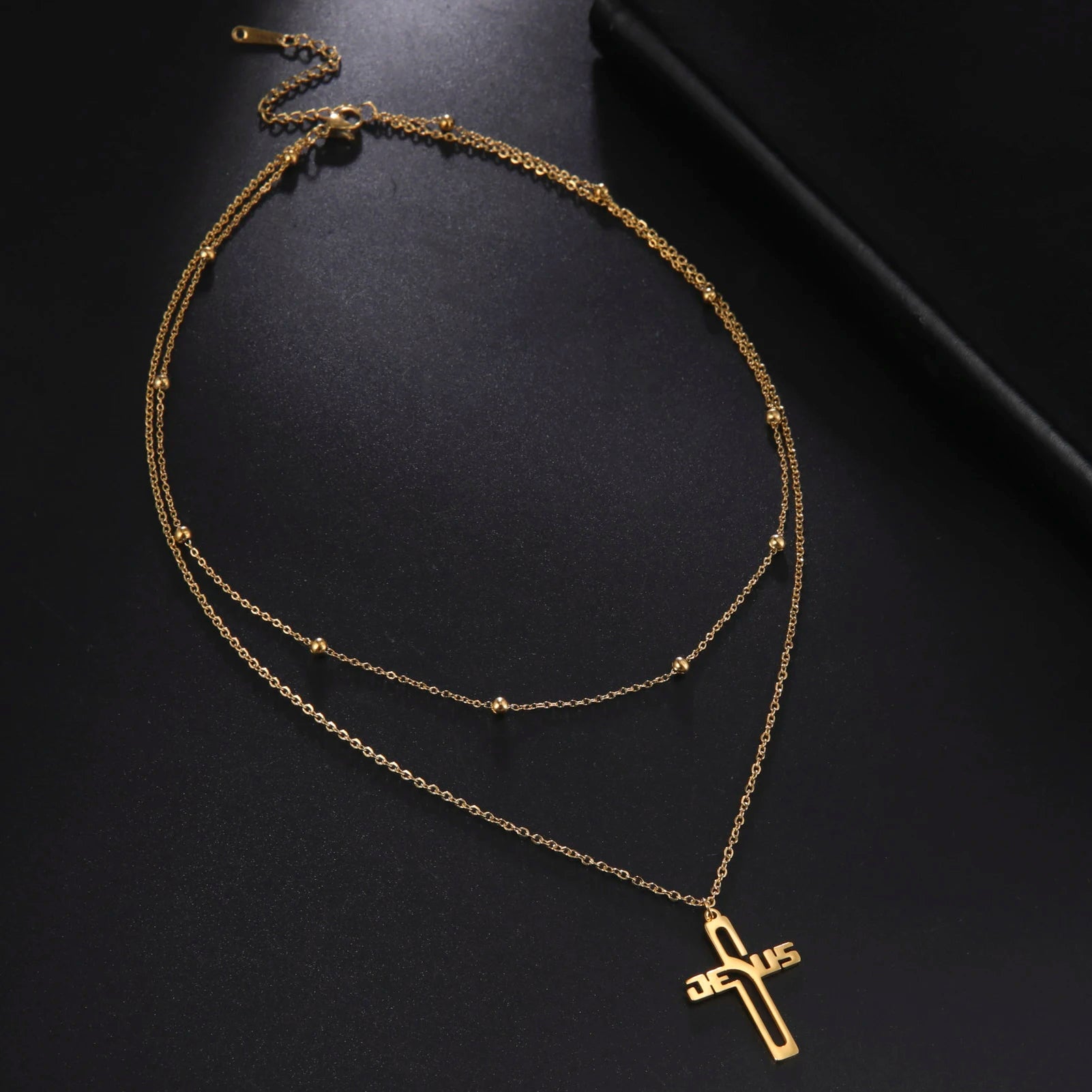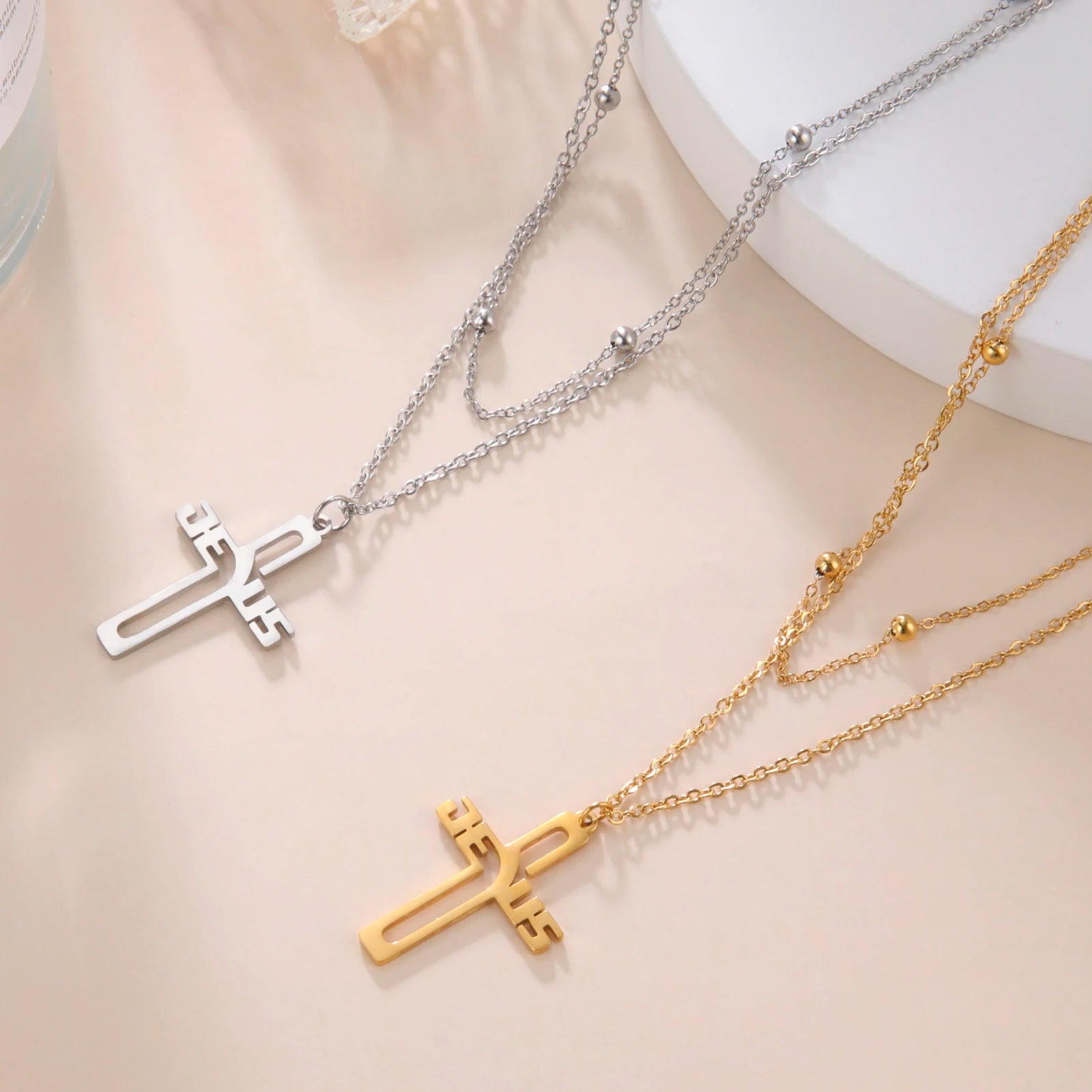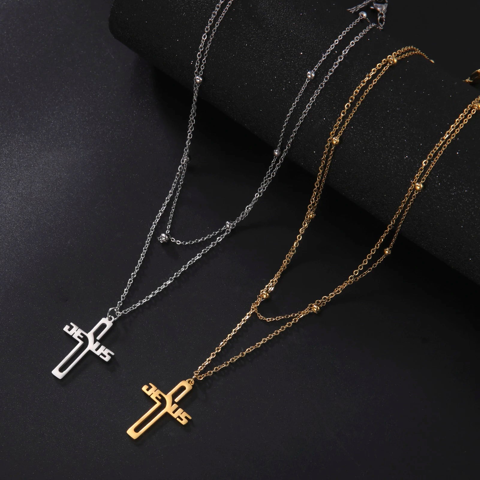 ✨ Collier avec Pendentif Croix Jésus en Acier Inoxydable