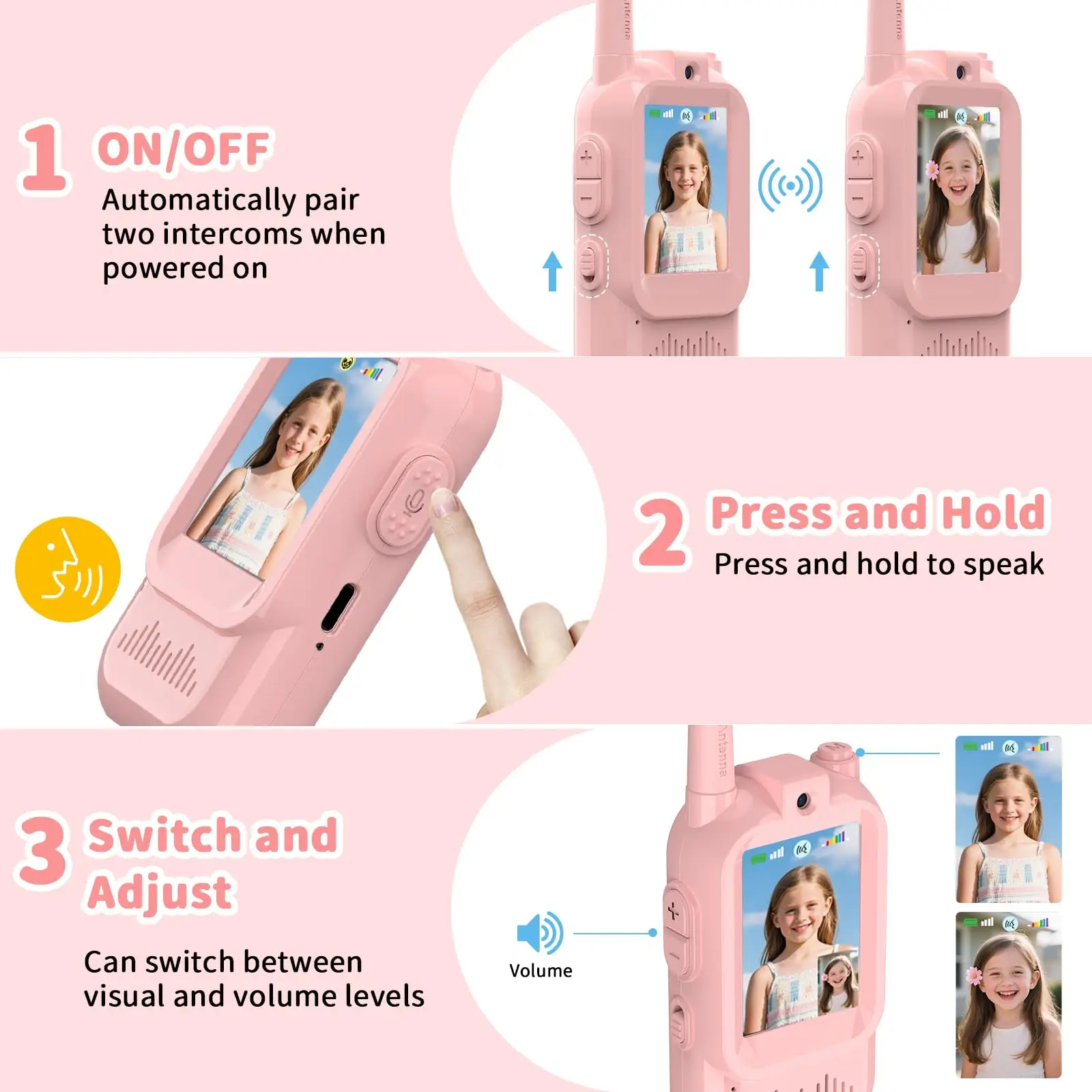 [Le cadeau idéal pour les enfants] : Nos talkies-walkies vidéo sont parfaits pour les activités intérieures et extérieures, comme les sorties shopping, les promenades printaniÚres et le camping d'été. C'est un cadeau d'anniversaire ou de Noël idéal et un jouet d'extérieur parfait pour les enfants de 3 à 12 ans.